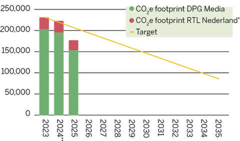 The CO₂e footprint included in this annual report includes RTL Nederland. This also applies to the figures for 2023 and 2024. This is standard practice under the prescribed reporting rules (GHG Protocol).
